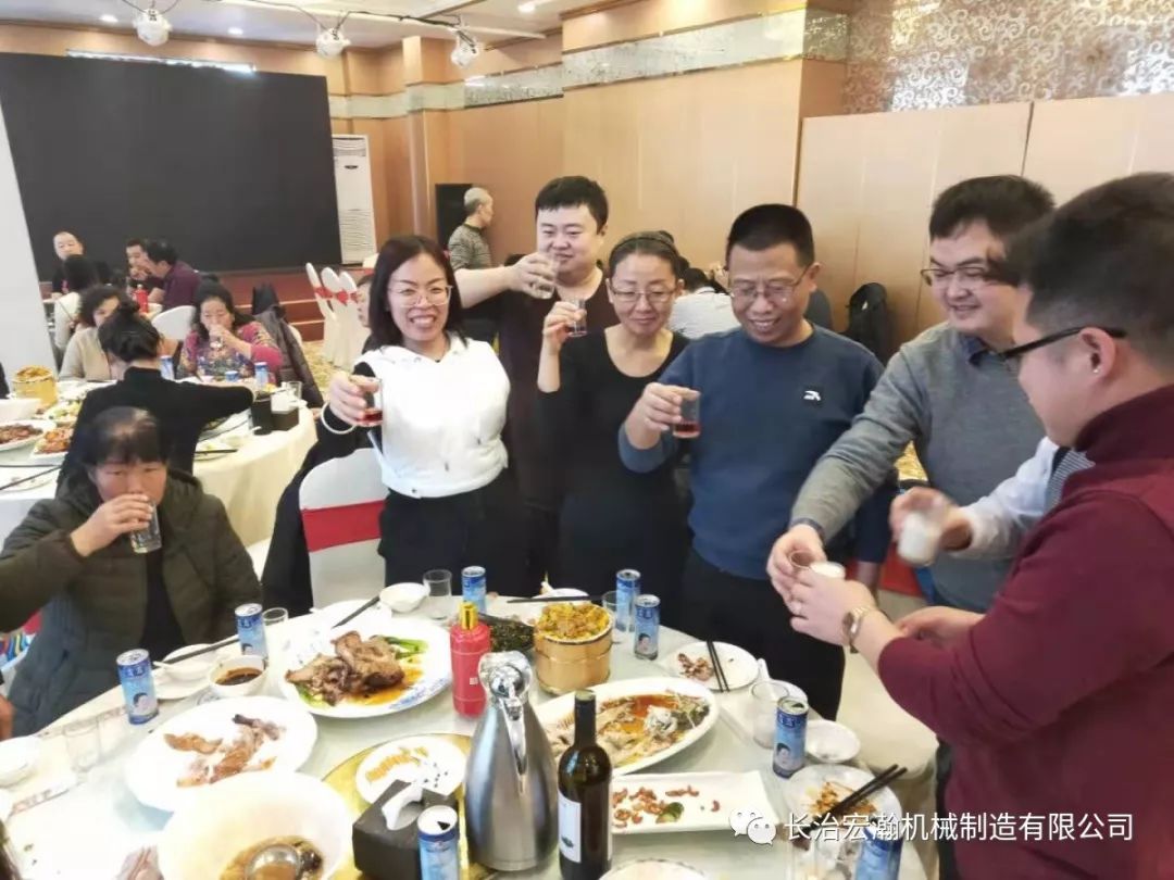 公司領(lǐng)導(dǎo)在年終聚餐會上誠摯的對員工說“新年快樂”承載了滿滿的祝福,大家歡聚一堂每個(gè)人都是滿心歡喜。